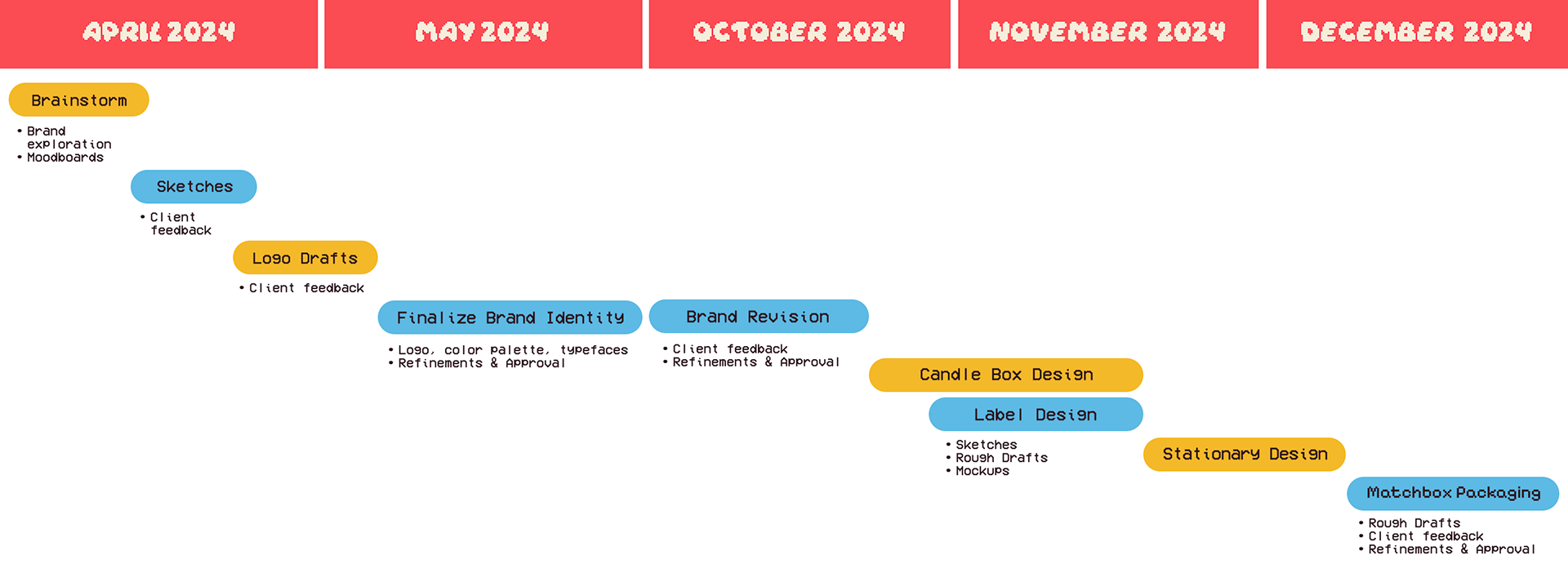 Starting this project, the only information I knew was that my client was starting a new handmade candle business and wanted their branding to be sweets-themed. I conducted research on design trends within the candle industry and analyzed competitors. I also gathered insights into popular packaging designs, scent profiles, and customer expectations.